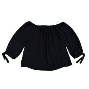 J Crew Blouse Top Size XS Women’s Black Off the Shoulder 3/4 Tie Sleeve