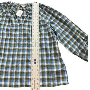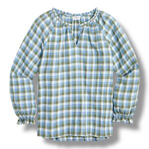 J Crew Blouse Womens XL Green Tilly Plaid Artist Top Blue Ruffle Neck Boho Fall Classic Pumpkin Patch Autumn