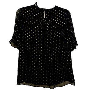 J. Crew Blouse Women’s Medium Black Yellow Sheer Polka Dot Ruffle Neck.