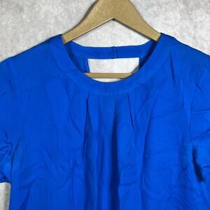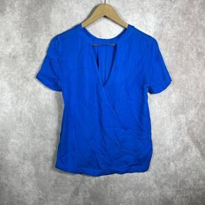 J. Crew Blouse Womens Size 4 Blue Silk Cutout Back Short Sleeves Crew Neck