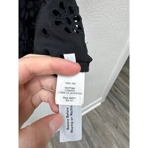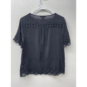 J Crew Blouse Women's Size 6 Black 100% Silk Embroidered Lasercut Shirt