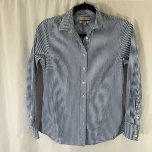 J. Crew Blouse Women's Small Petite White Blue Striped Button Up Long Sleeve