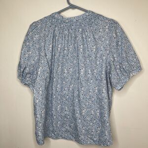 J. Crew Blouse Women’s XXL Blue White Floral Print Puff Sleeve Button Up