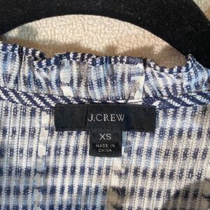 J Crew Blouse XS Navy Re-Imagined Ruffle Neck Button Up Stripe Geometric Design