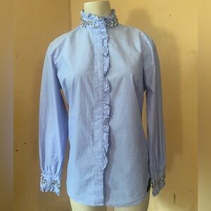 J. Crew Blue 3/4 Sleeve Ruffled Button Down Shirt