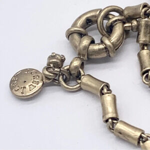 J. Crew Blue Beaded Long Necklace. Antique gold linked beads with orange faceted beads. Measures approximately 36”.