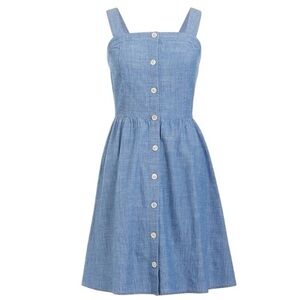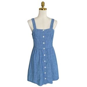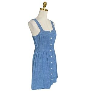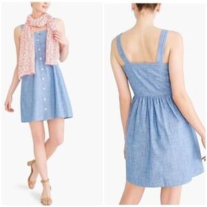 J Crew Blue Chambray Button-Front Sleeveless Fit & Flare Mini Summer Dress Sz 4