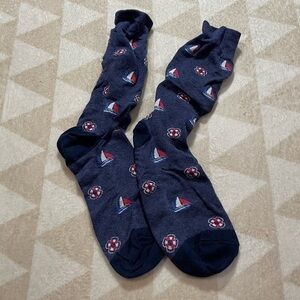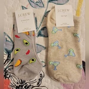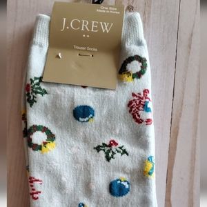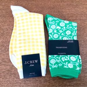 J. Crew Blue Checkered and White Socks with Embroidery