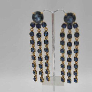 Beautiful long Blue Crystal Fringe earrings are in very very very good pre owned condition. Gold Plated Brass. Measures about 3" long.