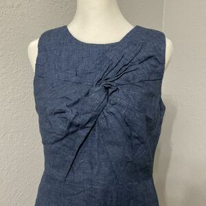 J Crew Blue Drape Knot Linen Blend Sheath Dress Sz 4 Work Dress Business Casual