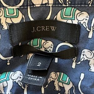 J. Crew Blue Elephant Block Print Button Down Shirt