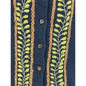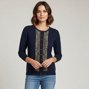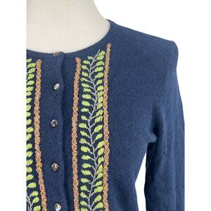 J. Crew Navy Blue Embroidered & Beaded Cashmere Blend Button Front Cardigan