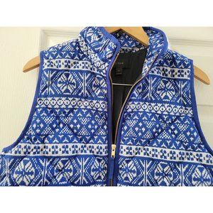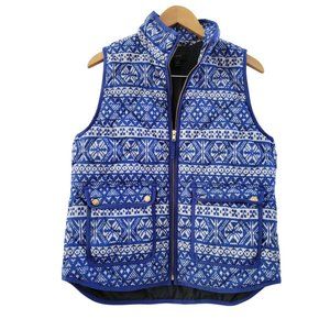 J. Crew Blue Excusion Blue fair Isle Puffer Full zipper Vest size Medium