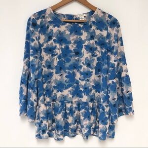 J Crew Blue Floral Print Peplum Blouse Sz XS