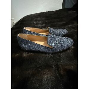 J. Crew Blue Glitter Smoking Slippers Flats Loafers Women's Size 9.5