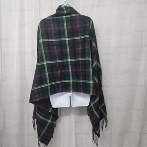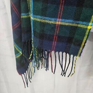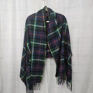 J. Crew Blue Green Plaid Shawl Scarf Fringe Wool OSFA