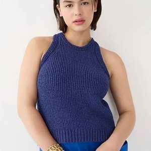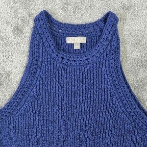 J. Crew Blue High Neck Textured Pointelle Sweater Tank Crochet Trim Boho BQ206
