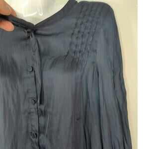J. Crew Blue Lightweight Pleated Tie Neck Long Sleeve Button Top Size XS