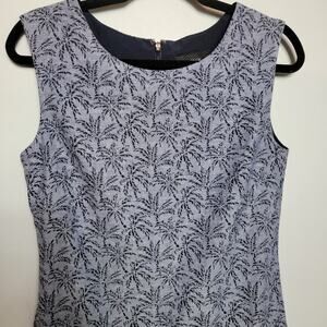 J Crew Blue Linen Dress Sz 4 Women's Floral Sleeveless Lined Career Office