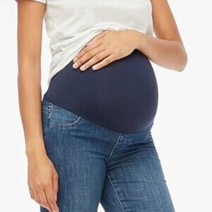 Preowned comfortable maternity jeans. Classic blue denim. Stretchy waistband for support.