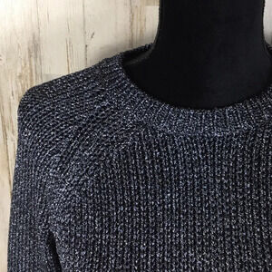 J. Crew Knit metallic pullover sweater, size XS. Grey / Silver, but blue fibers sparkle in the light. In good used condition with no major flaws. All items are from a pet free, smoke free home and will ship same or next day.