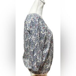 J. Crew Blue Multi-color Floral Peasant Junes Meadow Liberty of London Top XS