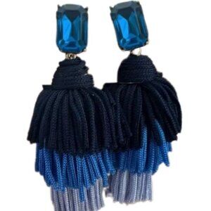 J Crew Blue Ombre Tassel Earrings with Blue Rhinestone