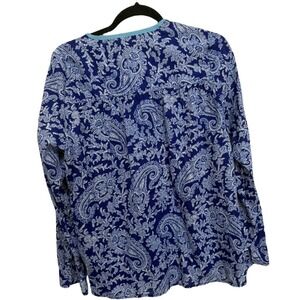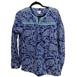 J Crew Blue Paisley Print Embroidered Long Sleeve Shirt Blouse Size Medium Boho
