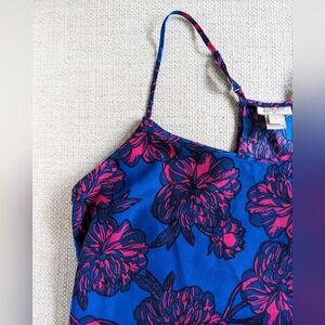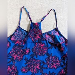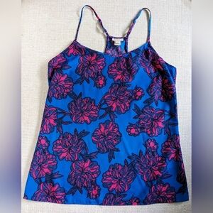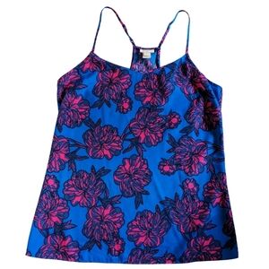 J. Crew Blue Pink Floral Print Racerback Tank Top Blouse Cami size 4