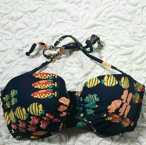 J Crew Blue Ratti Fish Rash Bikini Top 32D