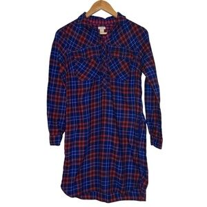 J. Crew Blue Red Button Up Flannel Long Sleeve Shirt Dress Mini Collared