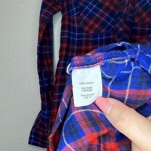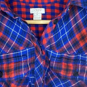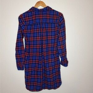 J. Crew Blue Red Button Up Flannel Long Sleeve Shirt Dress Mini Collared XS