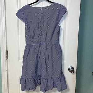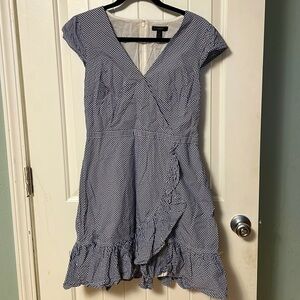 Chic blue mini dress with ruffle details. Perfect for casual outings. Comfortable and stylish.
