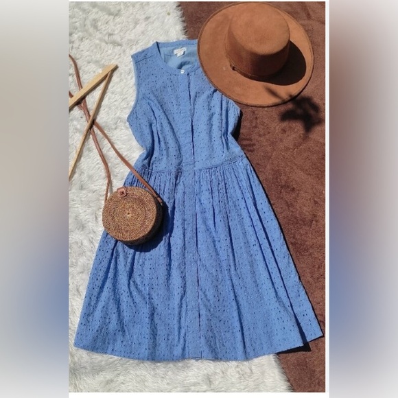 Embrace the casual elegance of the J. Crew Blue Sleeveless Sundress, perfect for resort wear. This midi dress features a flattering scoop neckline and a classic A-line silhouette that gracefully flares from the waist. Crafted from a lightweight fabric, it offers both comfort and style for your sunny adventures.