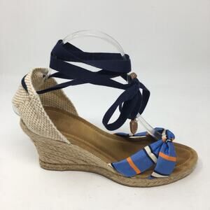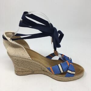 J Crew Blue Stripe Ankle Tie Woven 3" Espadrilles 8