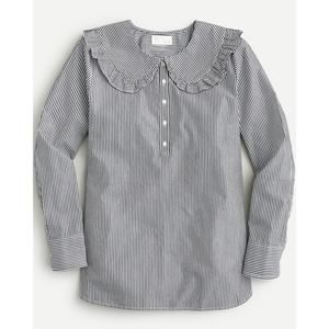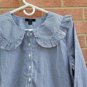 J.Crew navy striped blouse. Peter-pan collar with button cuffs.