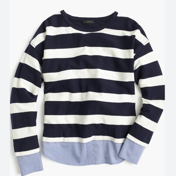 J. Crew Blue Striped Mock Layer Prep School Long Sleeve Top Preppy Nautical M