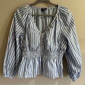 J. Crew blue and white striped smocked waist blouses. The shirt is in great condition and a size medium.