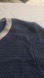Stylish blue textured sweater featuring cream accents on the collar and cuffs. Perfect for a cozy and chic look.Size Large small snab in the front chest area and left sleeve please see picture measurement from pit to pit 19 inches
