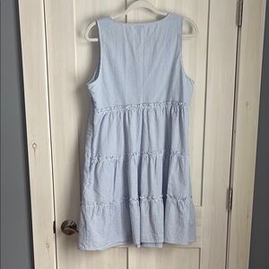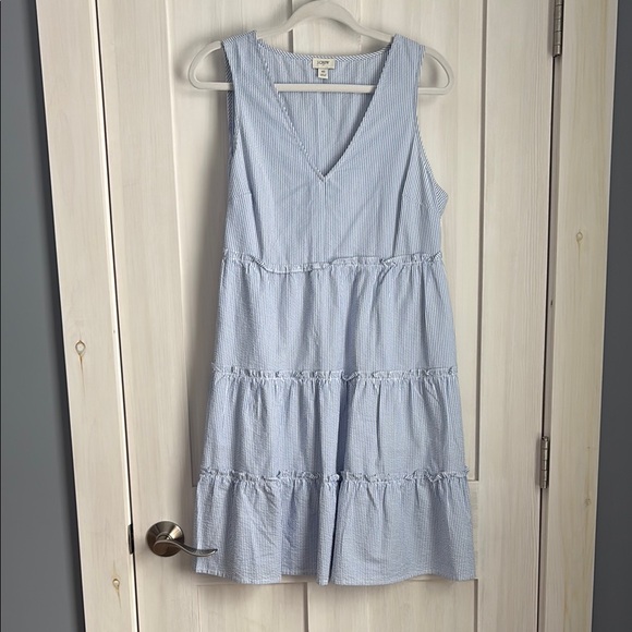 J. Crew Blue Tiered Ruffled Seersucker Dress