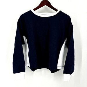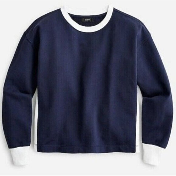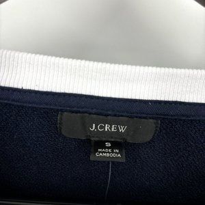 • J. Crew University Terry crop boxy navy blue and white sweatshirt (style BF363)