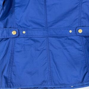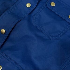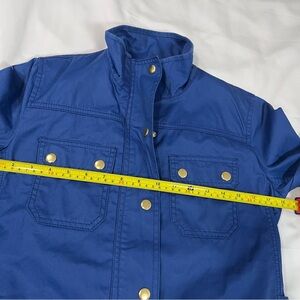 Chic blue utility jacket by J. Crew. Features stylish gold buttons. Ideal for versatile wear.
