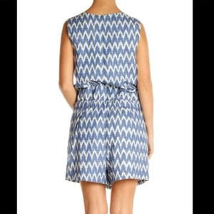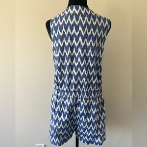 J. Crew Blue White Chevron Ikat Print Linen Cotton Shorts Romper Women’s Size 2