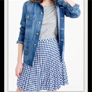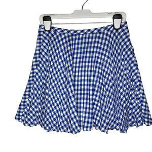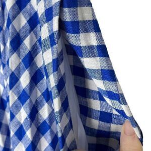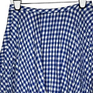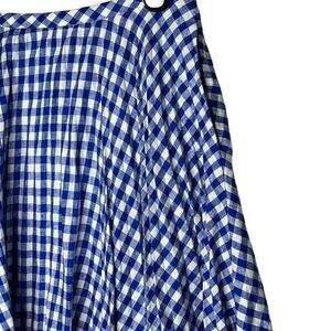 J. Crew Blue White Gingham Skirt 6 100% Linen Lined Swing Circle
