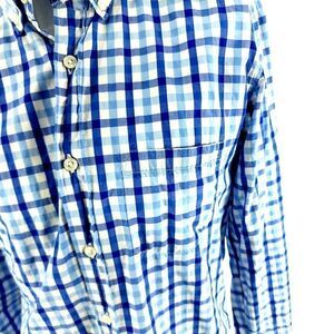 J Crew Blue White Plaid Light Weight Cotton Slim Fit Small Button Down Front Poc