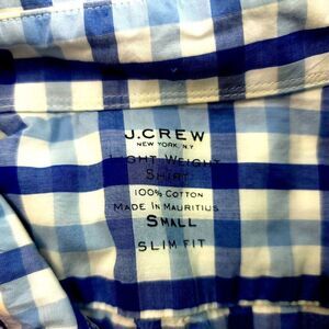 J Crew Blue White Plaid Light Weight Cotton Slim Fit Small Button Down Front Pocket