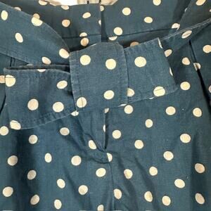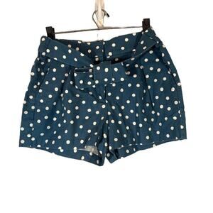 J. Crew Blue & White Polka Dot Linen Blend Belted Dressy Shorts Women Sz 8