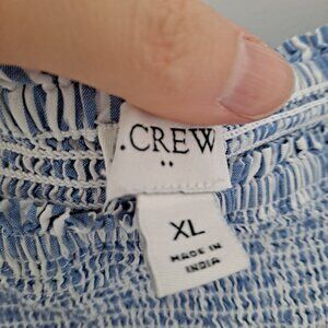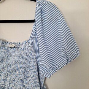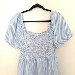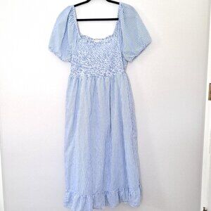 J. Crew Blue White Puff Sleeve Striped Romantic Midi Dress Smocked