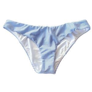 J Crew Blue White Seersucker Hipster Bikini Bottom Sz M NWT