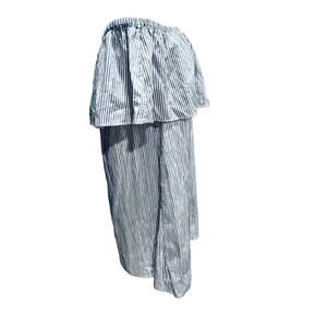 J. Crew Blue & White Stripe Large Ruffle Off Shoulder Knee Length Dress Size L